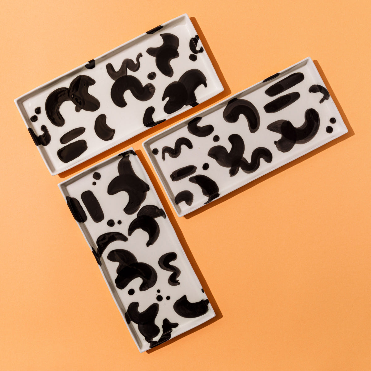 Das BONANA Tray zeichnet sich durch seine klassische Form und die klare weiss-schwarz Farbgebung aus. Die Servierplatte aus hochwertigem Porzellan wurde in Zusammenarbeit mit Simone Züger Design Studio in Zürich entworfen. Jedes Stück wird im Keramikatelier im Studio Sediment von Hand in Zürich hergestellt und bemalt - ein Unikat wie Bananen in ihrer natürlichen Form.